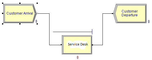 - A processing node consists of a ServiceDesk object with a waitingCustomers queue, and an associated ServicePerformance activity type. Every ServiceDesk object is either connected to a next service desk or to an exit node.